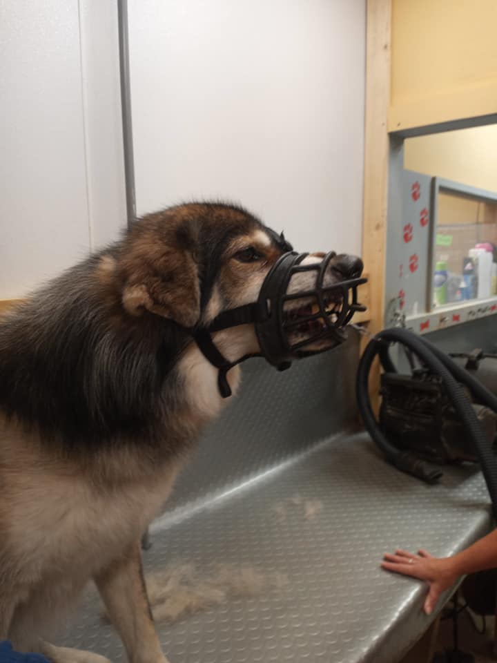 This has nothing to do with grooming, or being in a new place (he has been here before his owner is the bather), this is strictly about people within 10ft of him that are in his family. Can this be managed? Yes. He does not leave the house unless muzzled, he doesn’t go into public where he could come across people. He is trained very well in obedience but this is NOT something that will go away entirely.